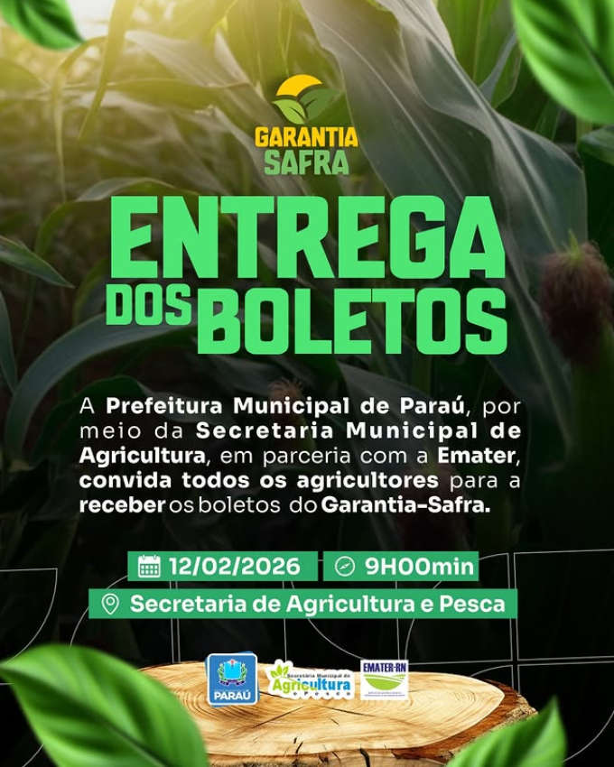 Atenção, agricultores de Paraú!A Prefeitura Municipal de Paraú, por meio da Secretaria Municipal de Agricultura, em parceria com a EMATER, informa que …
