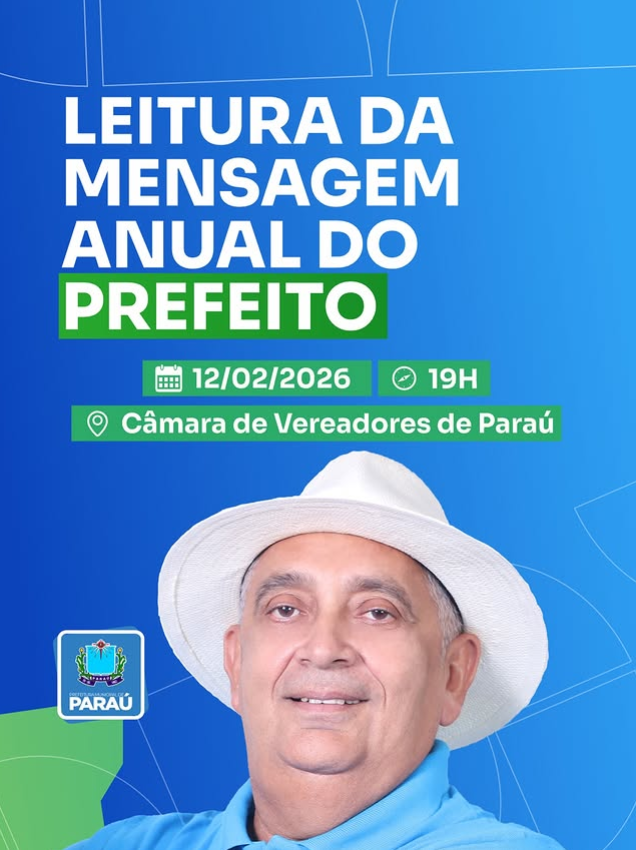 Dia 12 de fevereiro, o Prefeito estará na Câmara de Vereadores de Paraú para fazer a leitura da Mensagem Anual, abrindo oficialmente …